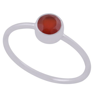 Alluring Gemstone Carnelian Round Shape 925 Sterling Solid Silver Ring