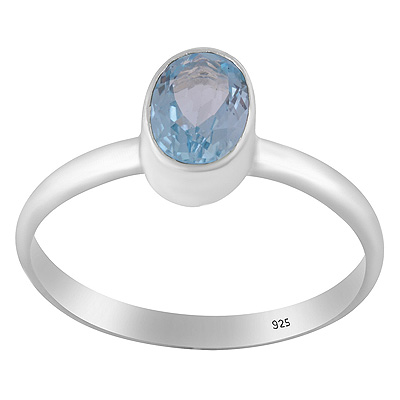 Home | Silver Rings | Cut Stone Rings | Stunning Plain Blue Topaz Oval Shape 925 Sterling Solid Silver Ring