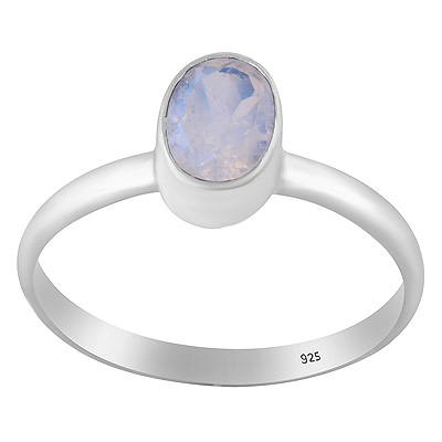 Home | Silver Rings | Cut Stone Rings | Stunning Plain Rainbow Moonstone Oval Shape 925 Sterling Solid Silver Ring