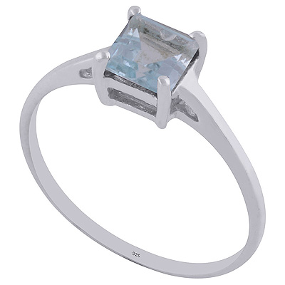 Gorgeous Prong Seated Gemstone Blue Topaz Square Shape 925 Sterling Solid Silver Ring