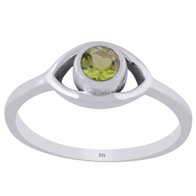 Alluring Handcrafted Eye Around Peridot Round Shape 925 Sterling Solid Silver Ring