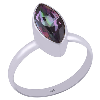 Home | Silver Rings | Cut Stone Rings | Plain Collet Natural Mystic Topaz Marquise Shape 925 Sterling Solid Silver Ring