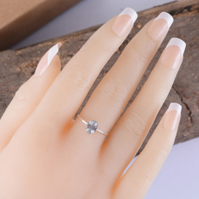 Home | Silver Rings | Cut Stone Rings | Elegant Green Amethyst Oval Shape 925 Sterling Solid Silver Ring