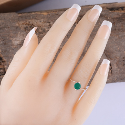 Home | Silver Rings | Cut Stone Rings | Gorgeous Shank Green Onyx Round Shape 925 Sterling Solid Silver Ring