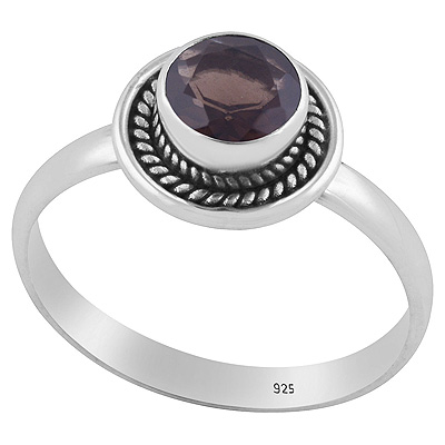 Stunning Textured Wire Around Smoky Topaz Round Shape 925 Sterling Solid Silver Ring