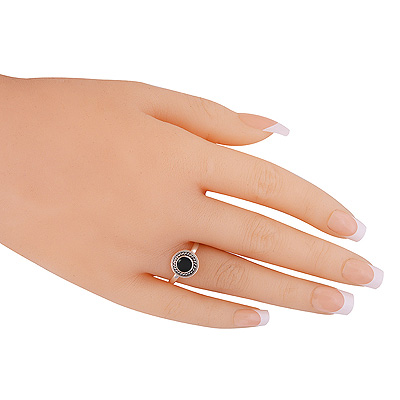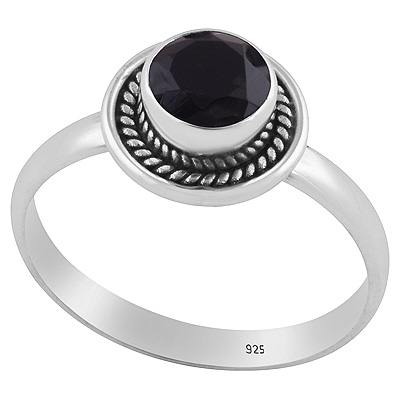 Stunning Textured Wire Around Black Onyx Round Shape 925 Sterling Solid Silver Ring