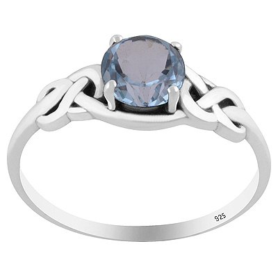 Criss Cross Knot Prong Setting Blue Topaz Round Shape 925 Sterling Solid Silver Ring
