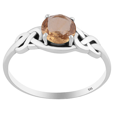 Criss Cross Knot Prong Setting Smoky Topaz Round Shape 925 Sterling Solid Silver Ring
