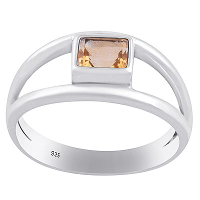 Alluring Split Shank Around Citrine Rectangle Shape 925 Sterling Solid Silver Ring