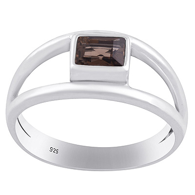 Alluring Split Shank Around Smoky Topaz Rectangle Shape 925 Sterling Solid Silver Ring