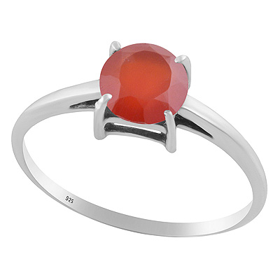 Stunning Prong Setting Around Carnelian Round Shape 925 Sterling Solid Silver Ring