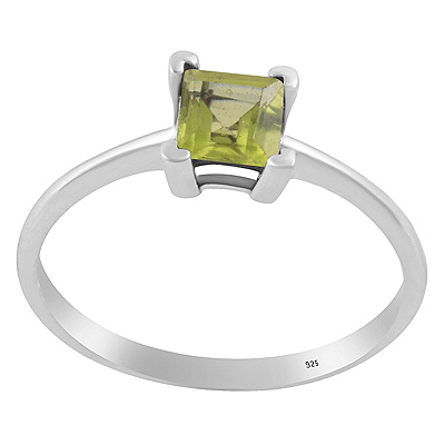 Beautifully Seated Gemstone Peridot Square Shape 925 Sterling Solid Silver Ring