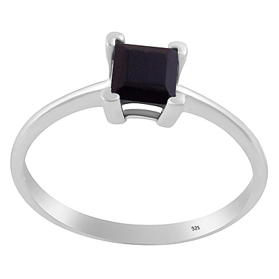 Beautifully Seated Gemstone Black Onyx Square Shape 925 Sterling Solid Silver Ring