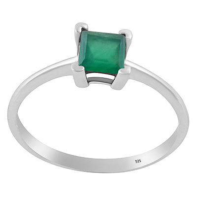 Beautifully Seated Gemstone Green Onyx Square Shape 925 Sterling Solid Silver Ring