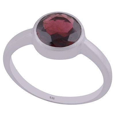 Home | Silver Rings | Cut Stone Rings | Magnificent Plain Garnet Round Shape 925 Sterling Solid Silver Ring