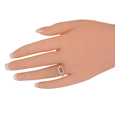 Layered Setting Around White Cubic Zirconia Rectangle Shape 925 Sterling Solid Silver Ring