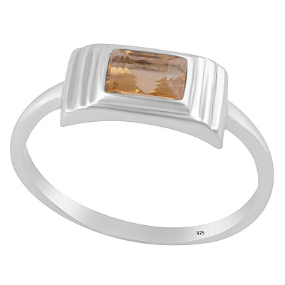 Layered Setting Around Citrine Rectangle Shape 925 Sterling Solid Silver Ring