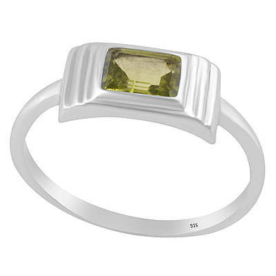 Layered Setting Around Peridot Rectangle Shape 925 Sterling Solid Silver Ring