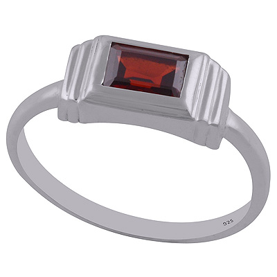 Home | Silver Rings | Cut Stone Rings | Layered Setting Around Garnet Rectangle Shape 925 Sterling Solid Silver Ring