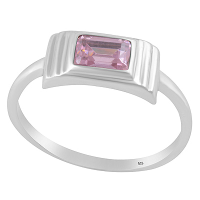 Layered Setting Around Pink Cubic Zirconia Rectangle Shape 925 Sterling Solid Silver Ring