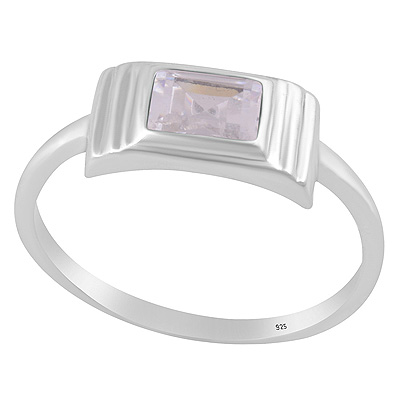 Layered Setting Around Pink Cubic Zirconia Rectangle Shape 925 Sterling Solid Silver Ring