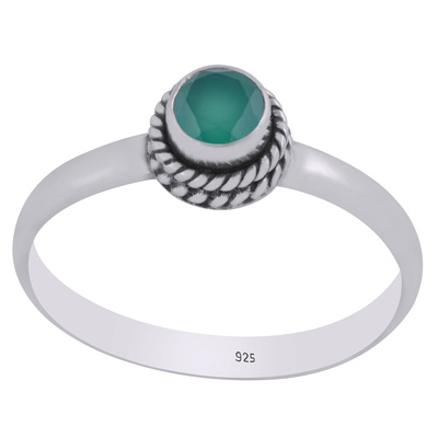Alluring Twisted Wire Work Around Green Onyx Round Shape 925 Sterling Solid Silver Ring