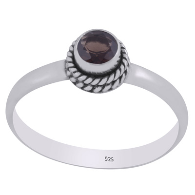 Alluring Twisted Wire Work Around Smoky Topaz Round Shape 925 Sterling Solid Silver Ring