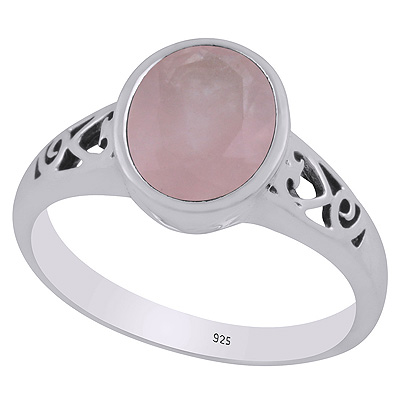 Gorgeous Handcrafted Cut Work Around Rose Quartz Oval Shape 925 Sterling Solid Silver Ring