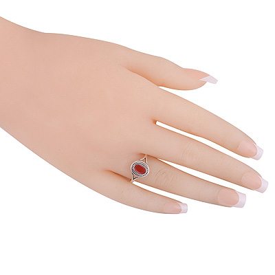 Alluring Rawa Work Around Carnelian Oval Shape 925 Sterling Solid Silver Ring