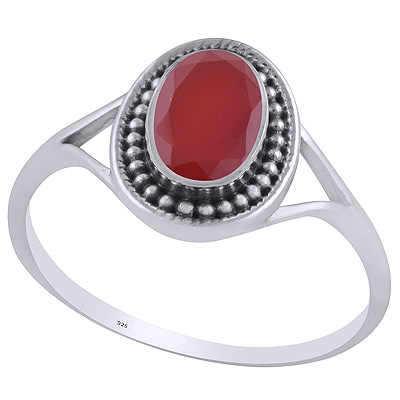 Alluring Rawa Work Around Garnet Oval Shape 925 Sterling Solid Silver Ring