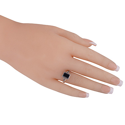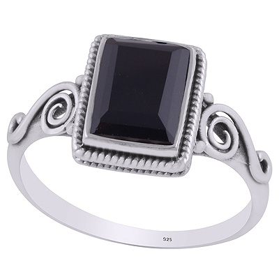 Stunning Coil Wire Work Around Black Onyx Rectangle Shape 925 Sterling Solid Silver Ring