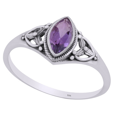 Gorgeous Handcrafted Work Around Amethyst Marquise Shape 925 Sterling Solid Silver Ring
