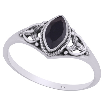Gorgeous Handcrafted Work Around Black Onyx Marquise Shape 925 Sterling Solid Silver Ring