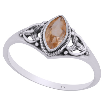 Gorgeous Handcrafted Work Around Citrine Marquise Shape 925 Sterling Solid Silver Ring