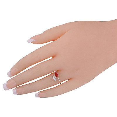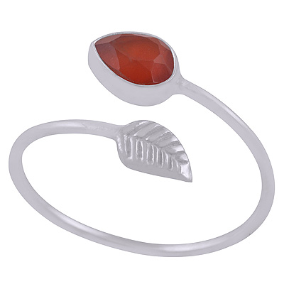 Classic Textured Leaf With Carnelian Pear Shape 925 Sterling Solid Silver Ring