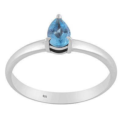 Alluring Gemstone Nickel-free Rhodium Plated Swiss Blue Topaz Pear Shape 925 Sterling Solid Silver Ring