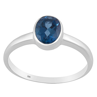 Classic Gemstone Nickel-free Rhodium Plated London Blue Topaz Oval Shape 925 Sterling Solid Silver Ring
