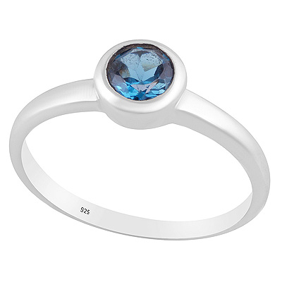 Classic Gemstone Nickel-free Rhodium Plated London Blue Topaz Round Shape 925 Sterling Solid Silver Ring