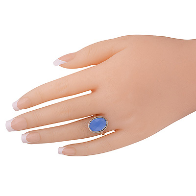 Authentic Wire Work Around Blue Chalcedony Oval Shape 925 Sterling Solid Silver Ring
