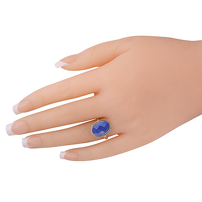 Authentic Wire Work Around Lapis Oval Shape 925 Sterling Solid Silver Ring