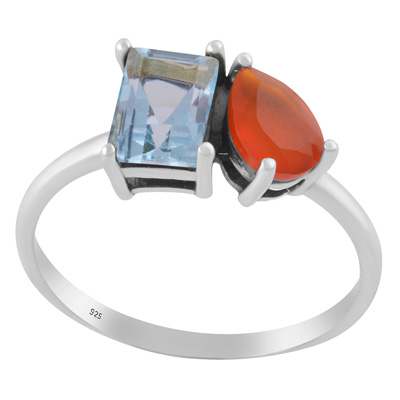 Stunning Multicolour Gemstones Studded Blue Topaz,Carnelian Rectangle,Pear Shape 925 Sterling Solid Silver Ring