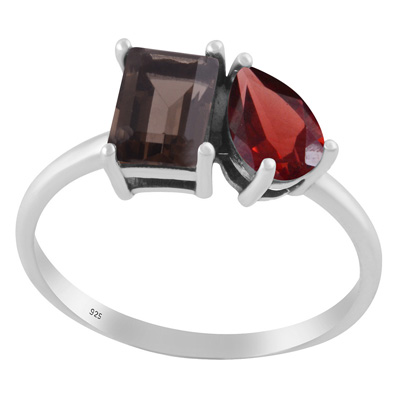 Stunning Multicolour Gemstones Studded Smoky Topaz,Garnet Rectangle,Pear Shape 925 Sterling Solid Silver Ring