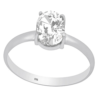 Beautiful Prong Setting Around White Cubic Zirconia Oval Shape 925 Sterling Solid Silver Ring