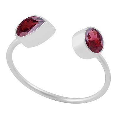 Alluring Two Stone N Shaped Garnet Round , Pear Shape 925 Sterling Solid Silver Ring