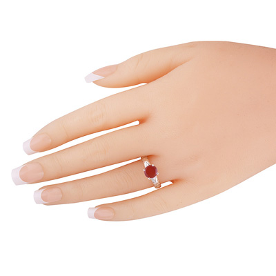 Alluring Prong Seated Gemstone Garnet Round Shape 925 Sterling Solid Silver Ring