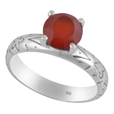 Alluring Prong Seated Gemstone Carnelian Round Shape 925 Sterling Solid Silver Ring
