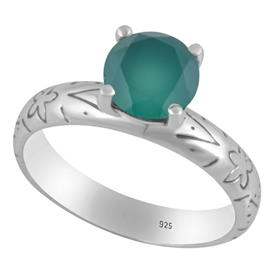 Alluring Prong Seated Gemstone Green Onyx Round Shape 925 Sterling Solid Silver Ring