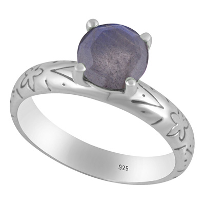 Alluring Prong Seated Gemstone Labradorite Round Shape 925 Sterling Solid Silver Ring