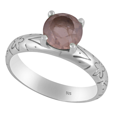 Alluring Prong Seated Gemstone Rose Quartz Round Shape 925 Sterling Solid Silver Ring