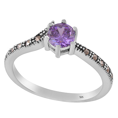 Stunning Oxidised Work Around Marcasite,Cubic Zirconia Round Shape 925 Sterling Solid Silver Ring